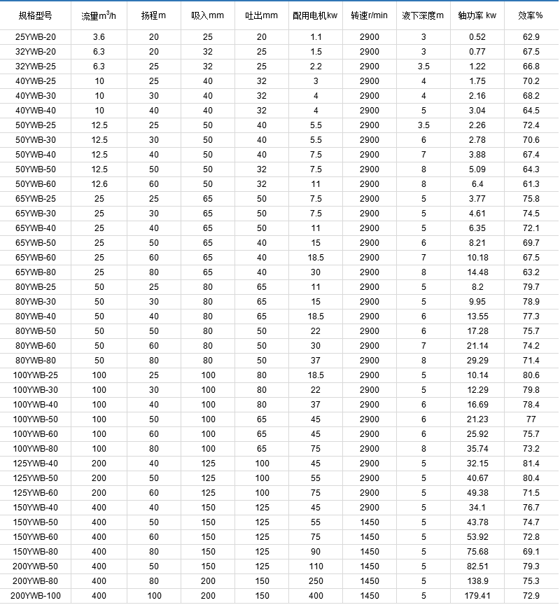 YWB液下無軸泵,適用于在-85℃~350℃條件下,長期輸送任意介質(zhì)酸、氧化劑及腐蝕性介質(zhì),廣泛應(yīng)用于化工、石油、制 藥、農(nóng)藥、電子、電力、電鍍、冶金、消防、環(huán)保、國防軍工、稀土冶煉等行業(yè)。其液下深度最深可達(dá)8米,使用時間是一般長軸液下泵的數(shù)十倍,使用安裝十分方便,克服了原單級單吸液下泵在運輸安裝運行過程中泵軸易彎曲變形(泵軸長度等于液下深度),軸承易損壞、軸套難以維修等缺點。