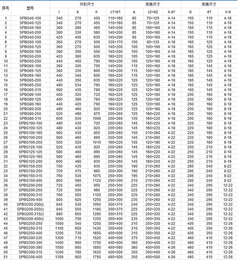 SPBG型屏蔽式管道泵,吸收了國際上屏蔽泵設(shè)計及制造的先進技術(shù),將電機的屏蔽技術(shù)應(yīng)用于流體輸送領(lǐng)域,為適應(yīng)國內(nèi)市場需求而最新推出的系列化新產(chǎn)品。 SPBG型屏蔽式管道泵系列性能參數(shù)基本符合國際標(biāo)準(zhǔn)ISO2858及國家標(biāo)準(zhǔn)JB/T6878.2-93的規(guī)定。具有設(shè)計規(guī)范,通用化程度高,結(jié)構(gòu)合理,性能穩(wěn)定,運轉(zhuǎn)低噪音,無振動等顯著特點,是替代常規(guī)臥式離心泵,立式管道泵的理想產(chǎn)品。 全系列共67個品種,184個規(guī)格,其性能范圍:流量6.3~1080m3/h,揚程12.5~125m,配用電機功率0.37~160kw,轉(zhuǎn)速1450r/min和2900r/min。